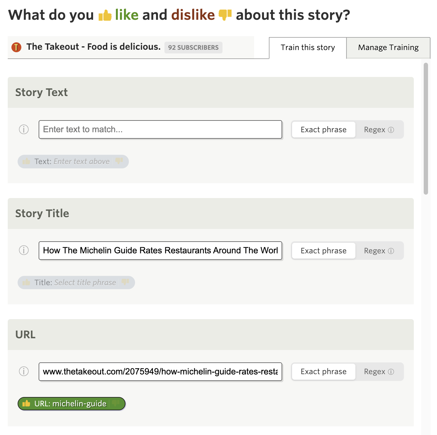 You can now train on story permalink URLs, not just titles and content. This opens up new filtering possibilities based on URL patterns.